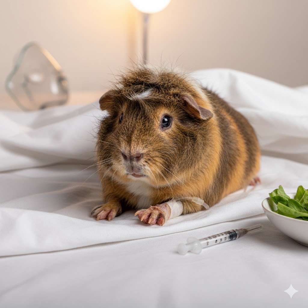 - Síntomas: La piel se rompe, se forma una costra o una úlcera visible; la cobaya cojea o rechaza pisar.